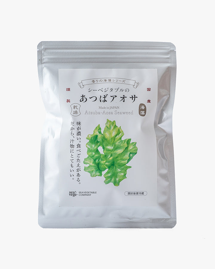 Cultivated in pristine seawater and dried while fresh, Atsuba Aosa is thicker than the commonly known Aosa (Hitoegusa). Its unique bitterness and robust flavor pair beautifully with warm soups, butter, and creamy dairy products, making it a sophisticated choice for adult palates.